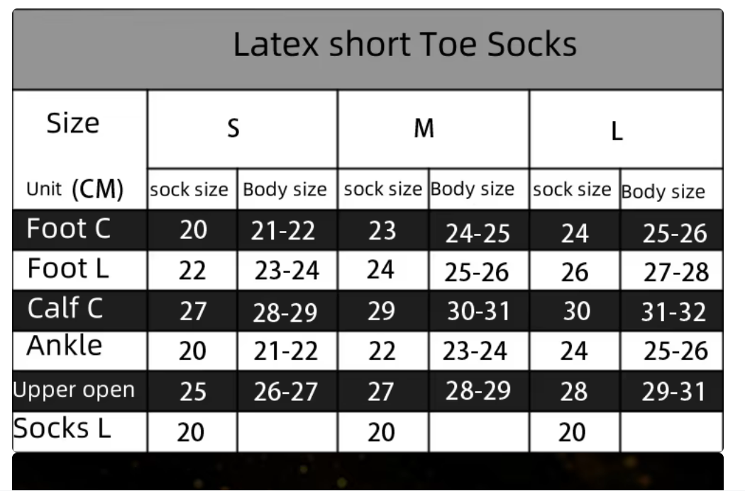 Calzini corti con le dita in 0,4mm latex