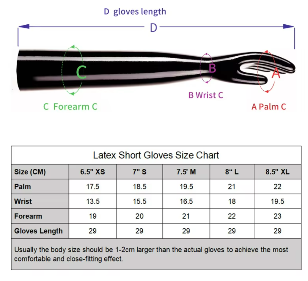 Guanti corti con le dita in 0,4mm latex.
